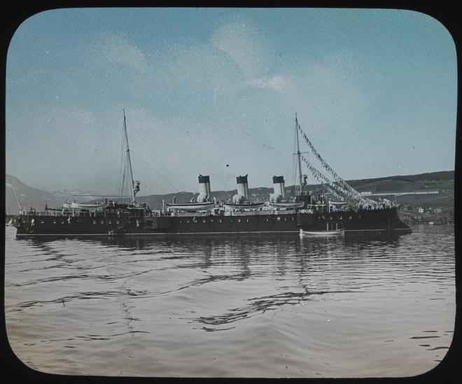 乍一看这艘军舰,就能毫不费力地看出它的法国血统——那种明显向前突出的圆形冲角式舰艏,以及舰体两侧的长方形舷窗,都极具法式舰船设计风格。一级巡洋舰“斯维特兰娜”号,其设计初衷与其说是一艘作战舰艇,不如说是一艘供高级权贵使用的礼宾游艇。然而,它仍然未能逃脱俄罗斯帝国海军许多舰艇的共同命运,在1905 年“郁陵岛”(Ulleungdo)附近的一场力量悬殊的战斗中被击沉。